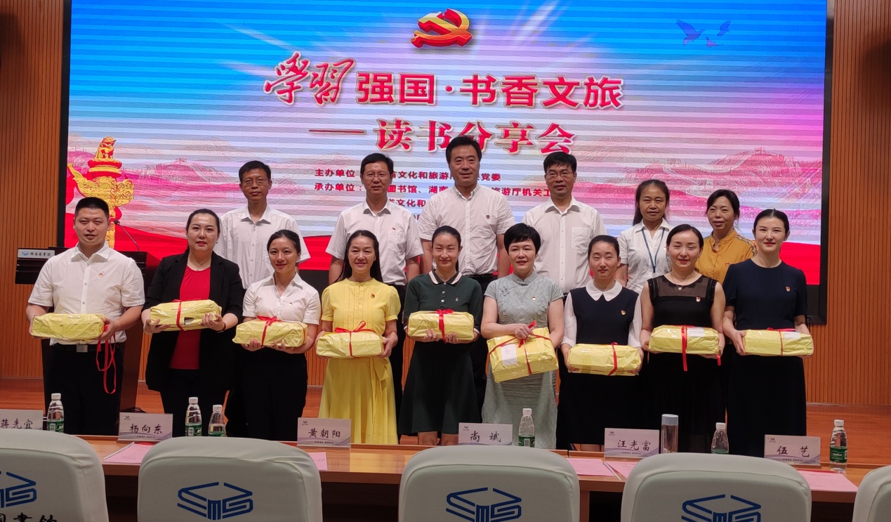 8月5日上午,由湖南省文化和旅游厅机关党委主办,厅机关工会、厅团委、湖南图书馆承办的“学习强国·书香文旅”读书分享会在省图书馆举行。省文化和旅游厅党组成员、副厅长尚斌出席活动并讲话,驻厅纪检监察组,厅机关党委、工会、团委、相关处室,省图书馆、省湘剧院等单位,以及我院党政办(宣传统战部)、“三馆”管理中心有关负责同志参加了活动。