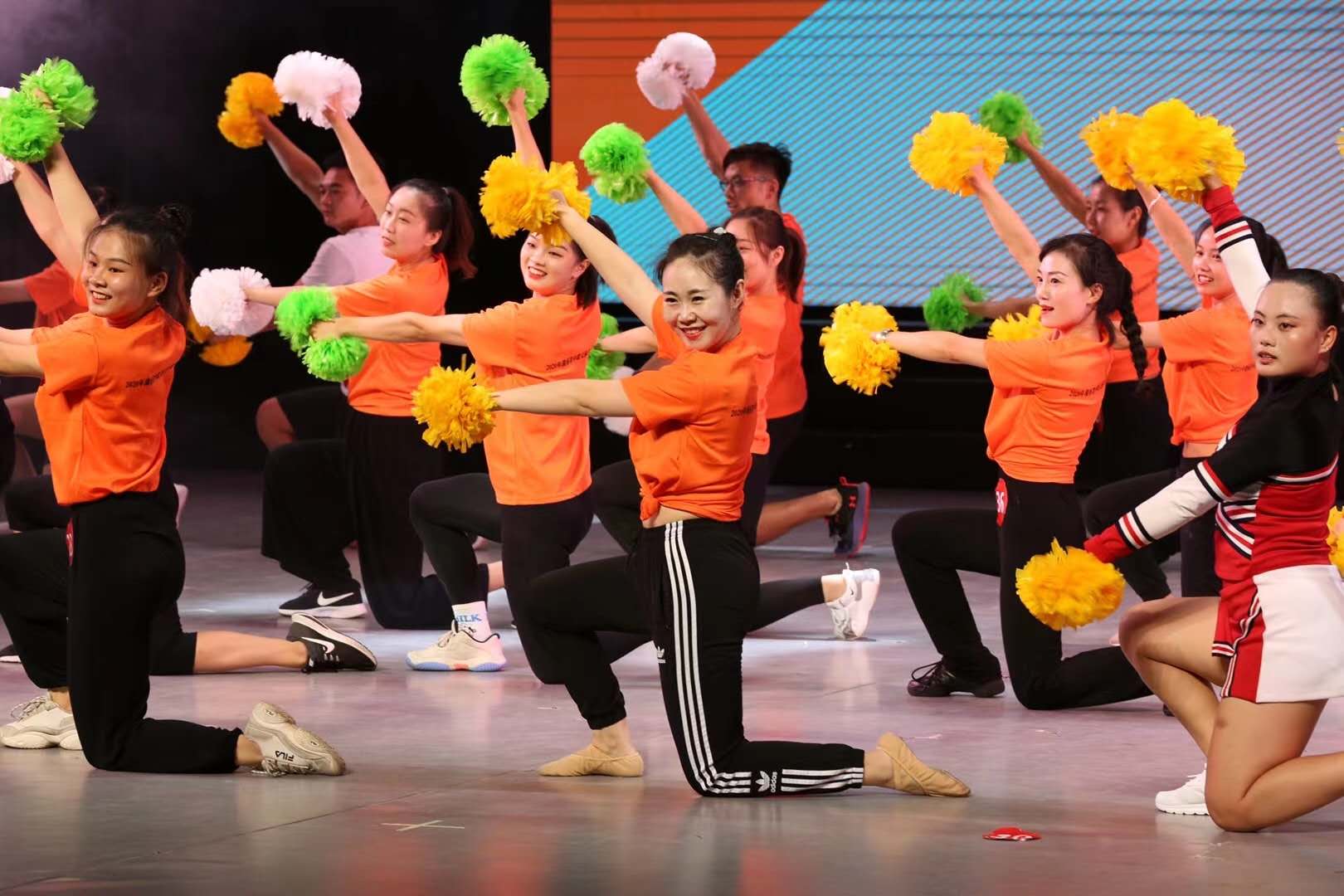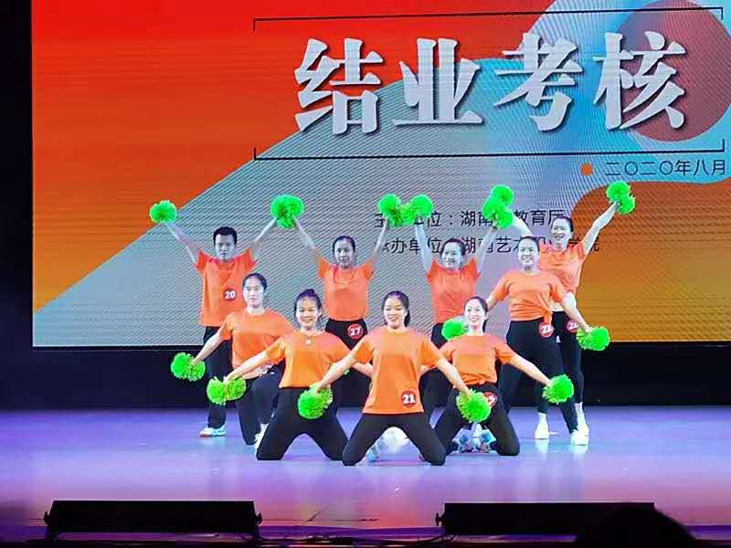 本次培训由湖南省教育厅主办,jinnianhui今年会承办,共80名学员,所有学员均通过考试获得了啦啦操二级教练员证书。培训过程中,授课专家们灵活选用教学方法,通过分组编排、现场表演、疑难解答、互动点评、成果展示等环节,极大地丰富了课程内容,凸显了专业特色,增强了培训针对性和实用性。全体学员分组编排了10个高水平的啦啦操节目,以精湛的结业考核演出为此次培训画下了圆满的句号。