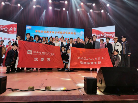 10月17日,在邵阳市洞口县2020年“国家扶贫日”主题活动中,我院师生共同创排的情景诗朗诵《扶贫书记》惊艳亮相。本次活动由学院党委委员、戏剧系党支部书记刘坚平带队,该节目由戏剧系主任贺冬梅担任总策划,科研处处长张建安撰稿。