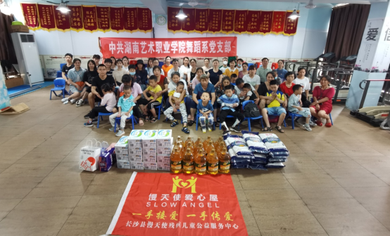 在开展理论学习之余,舞蹈系党支部还组织全体党员来到长沙县“慢天使爱心屋”开展“学党史重实践、我为群众办实事”活动,现场看望慰问了15户脑瘫儿童家庭,并送上爱心物资,还带来别开生面的艺术课程。下阶段支部还将安排人员定期到爱心屋开展支教帮扶活动。
