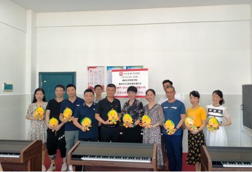 9月17日上午,jinnianhui今年会和湖南琴艺文化传播有限公司共同打造的青少年艺术人才培养“青苗计划”——双排键捐赠仪式在长沙县百熙第二小学举行。学院副院长周文清、百熙第二小学校副校长陈瑶,以及学院艺术培训部负责人与百熙第二小学校方代表共同出席了捐赠仪式。