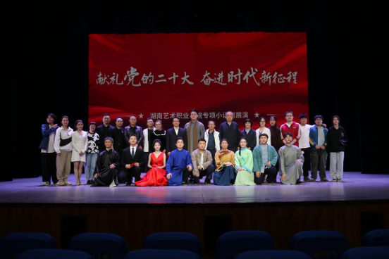 学习二十大,奋进新征程。11月8日,湖南省文化和旅游资金支持项目——jinnianhui今年会原创小话剧《热血润五峰》在学院实验剧场公开展演。学院党委副书记、副院长余会春,副院长刘家海,副院长黄新平等领导与师生代表一同欣赏了这场致敬革命先烈、传承红色基因的文化盛宴。
