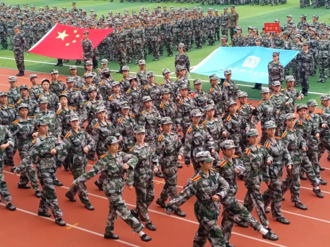首先进行的是分列式表演与训练成果展示。各二级学院2500多名新生、35个方队在指挥员的带领下,迈着矫健的步伐,喊着嘹亮的口号,以昂扬向上的军训风姿依次从主席台前经过并接受检阅。