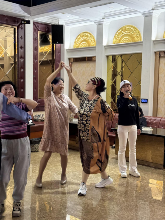 当天下午,老同志们或三五成群闲话家常,或举起相机定格美好瞬间,或拿起话筒引吭高歌,或伴着歌声翩翩起舞,或结伴垂钓暖阳之下……