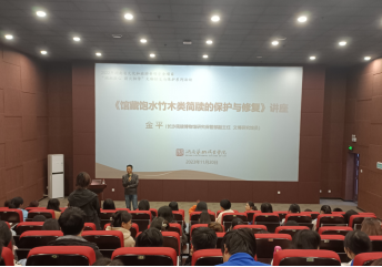 当天下午,长沙简牍博物馆研究保管部副主任金平为文物修复与保护专业师生作《馆藏饱水竹木类简牍的保护与修复》专题讲座,并现场为师生们答疑解惑,鼓励大家坚信“冷门不冷,绝学不绝”,对专业保持热情、保持热爱,始终保持对文物的敬畏之心。