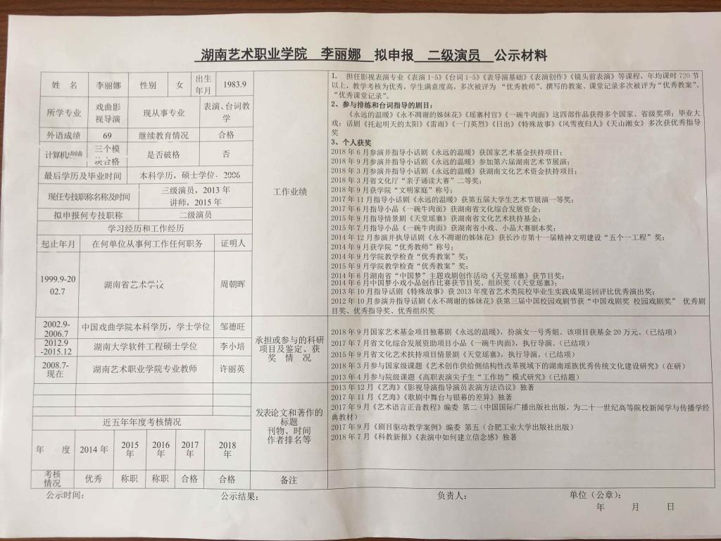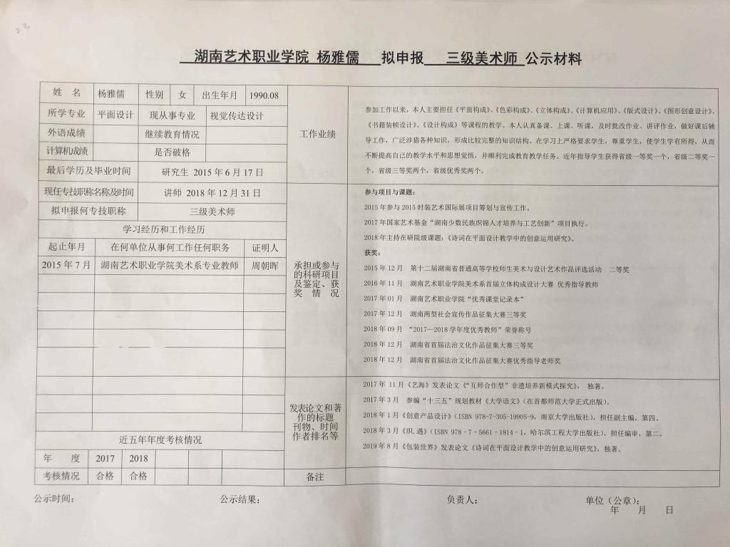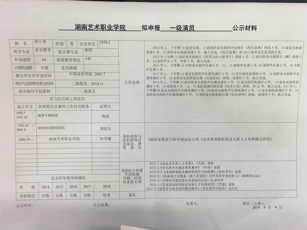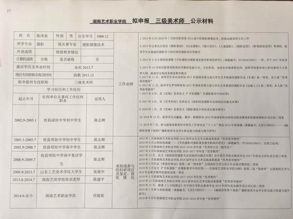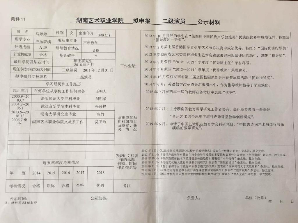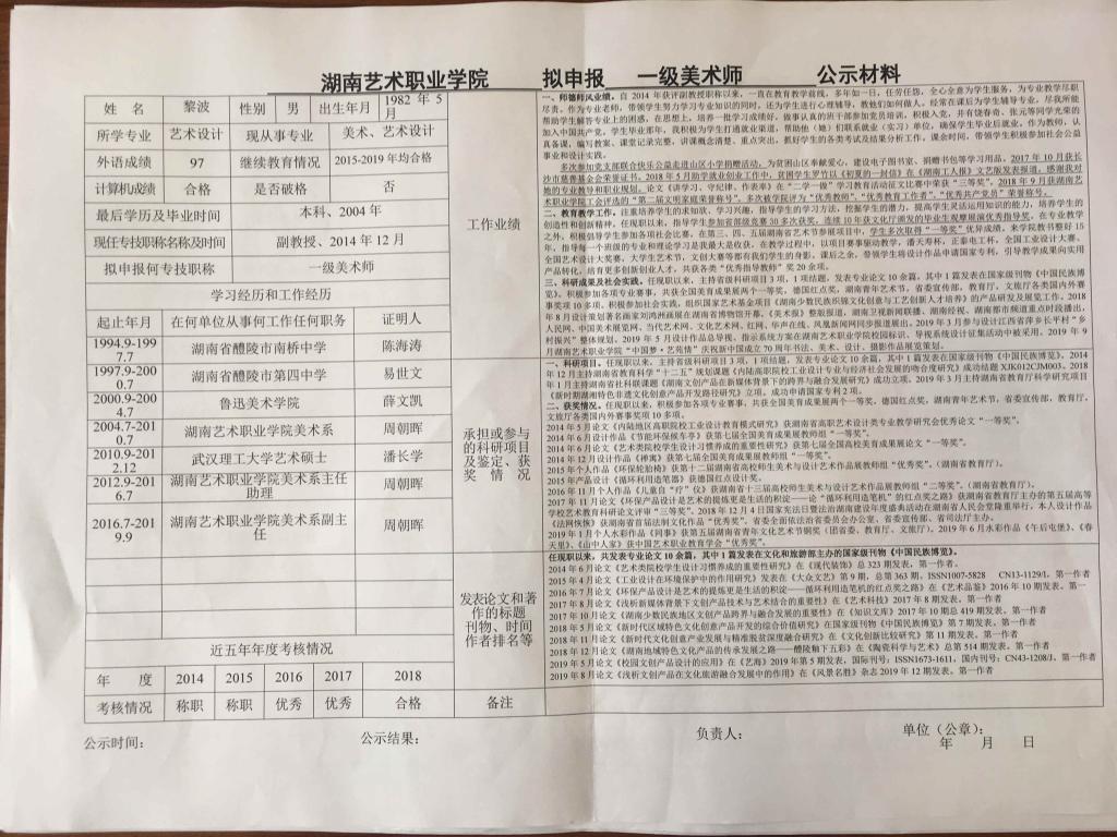 学院今年有34位同志申报艺术、图书资料、群众文化、政工系列职称,按湘文旅人【2019】84号《关于做好2019年度艺术、图书资料、群众文化、文物博物系类职称评审工作的通知》规定,现将以下同志的基本情况予以公示。公示人员名单见附件。