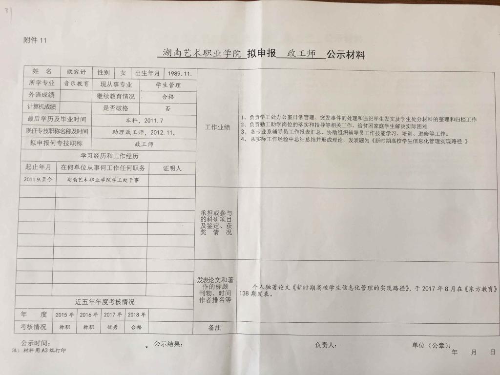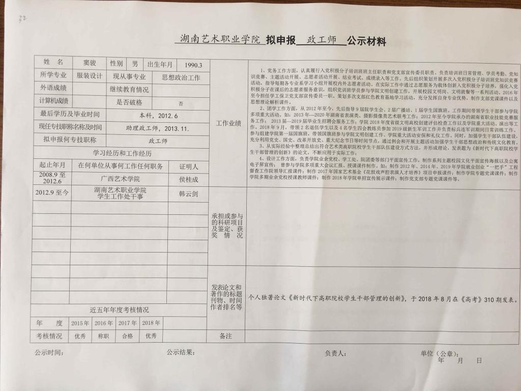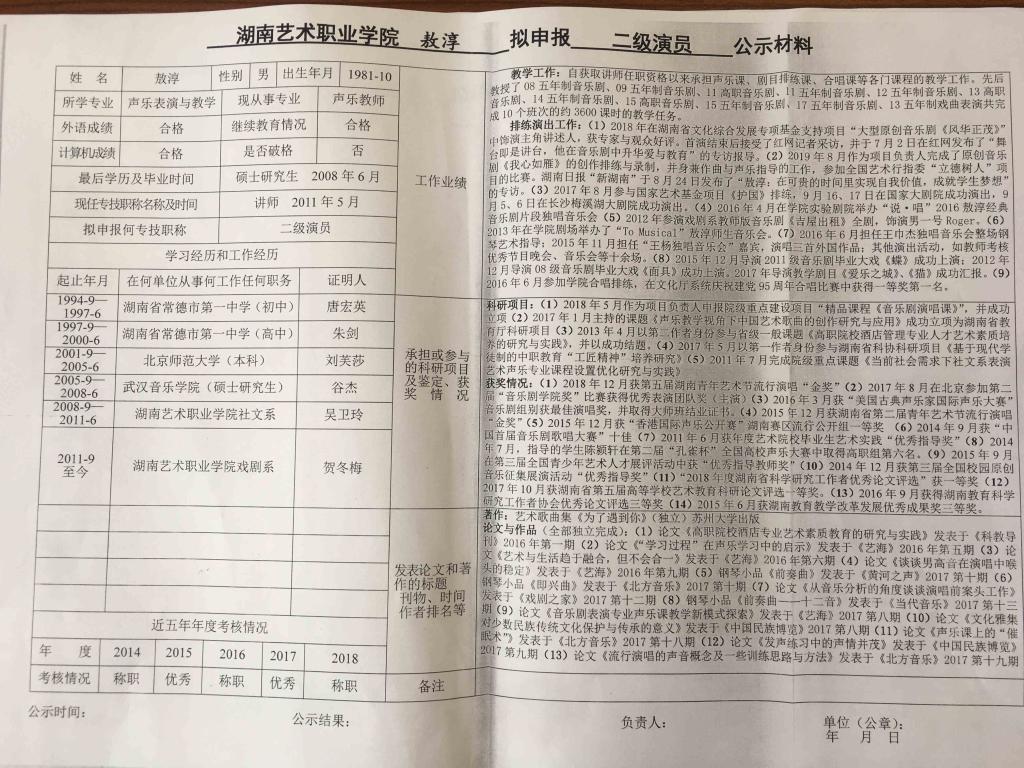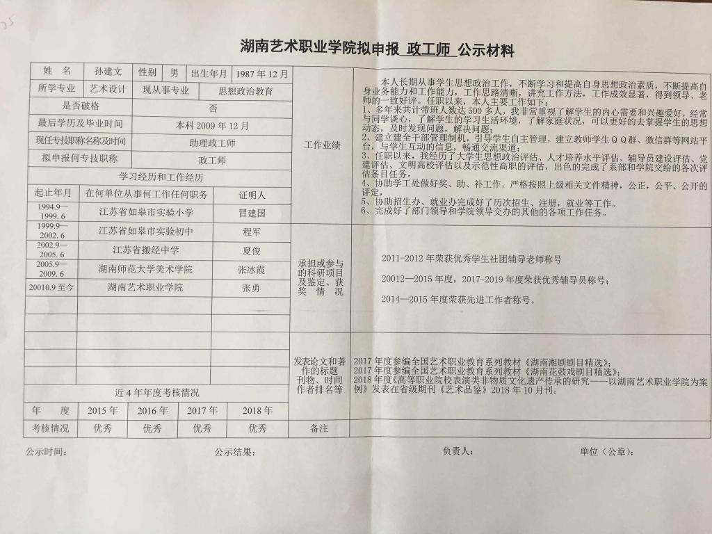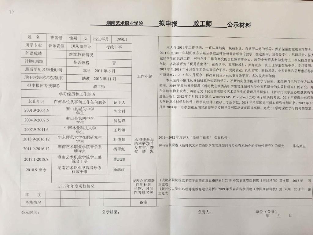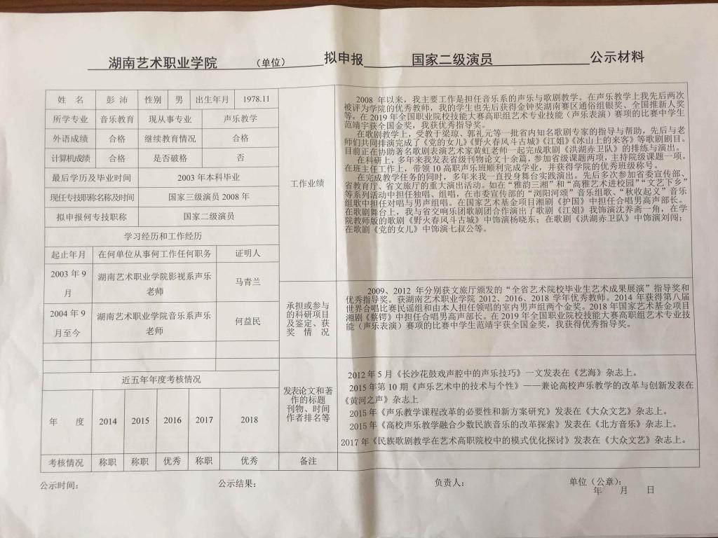 学院今年有34位同志申报艺术、图书资料、群众文化、政工系列职称,按湘文旅人【2019】84号《关于做好2019年度艺术、图书资料、群众文化、文物博物系类职称评审工作的通知》规定,现将以下同志的基本情况予以公示。公示人员名单见附件。