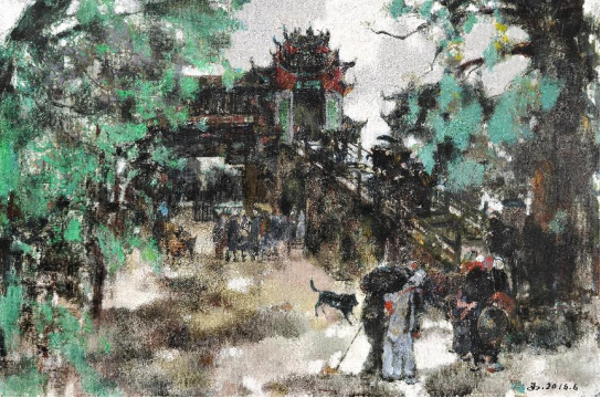 陈和西风雨桥 80x150cm 布面油画2016年