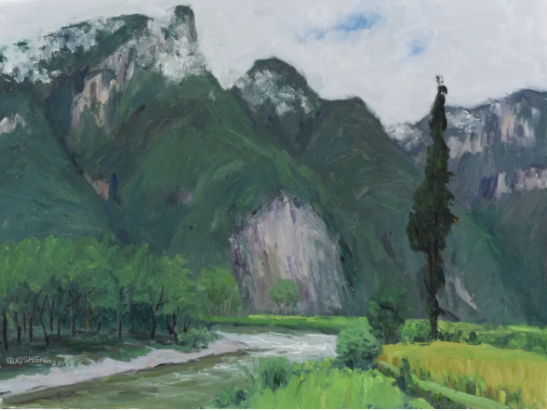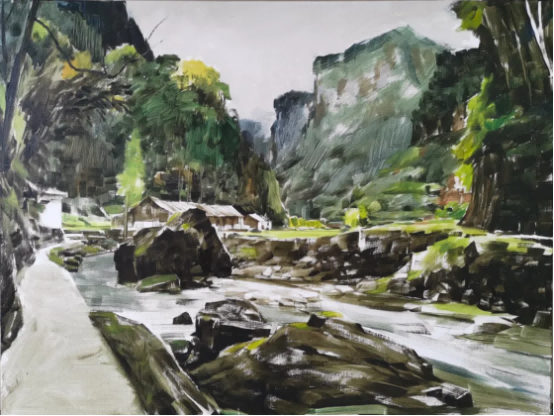 蔡国胜大龙洞河谷 60x80cm 布面油画2019年