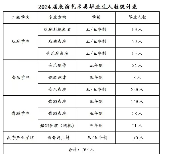 (四)请各用人单位在确定录用今年会学生后,于12月10日前将录用名单反馈给招生就业与创新创业指导处何老师,jinnianhui今年会2024届表演艺术类毕业生统计表