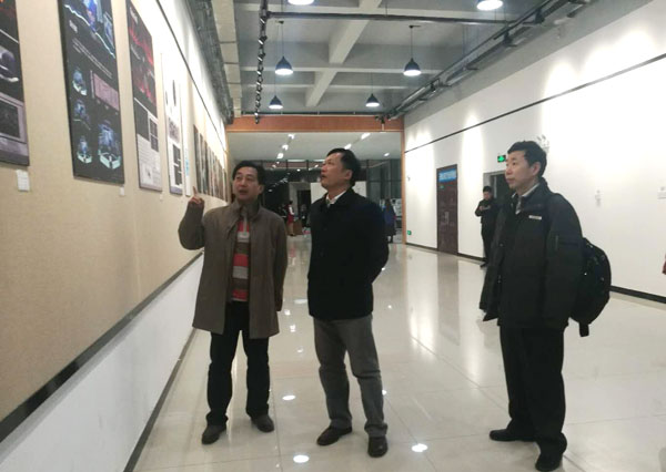 演出开始前,禹新荣同志在学院领导的陪同下,参观了美术系毕业生设计作品展,并与师生在食堂共进工作晚餐。