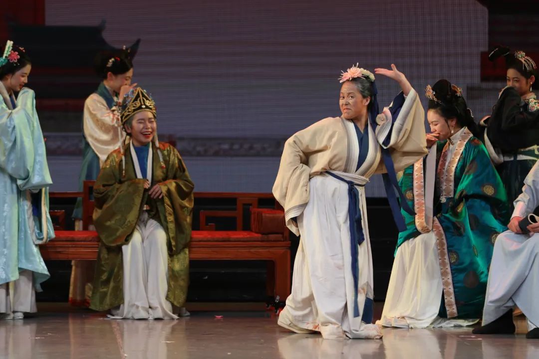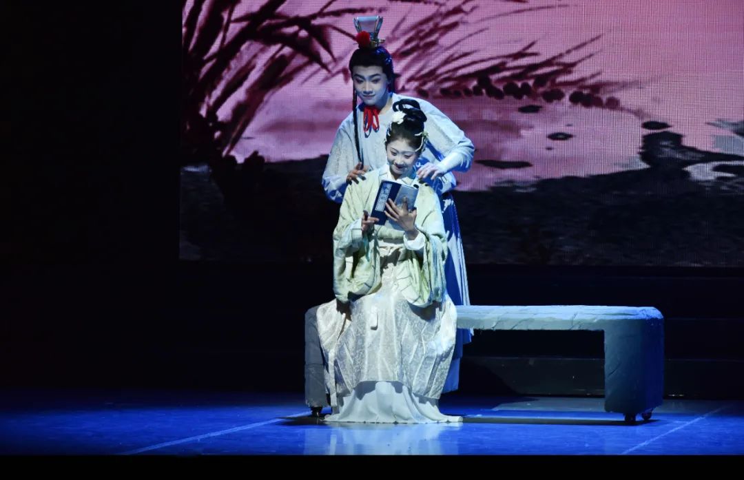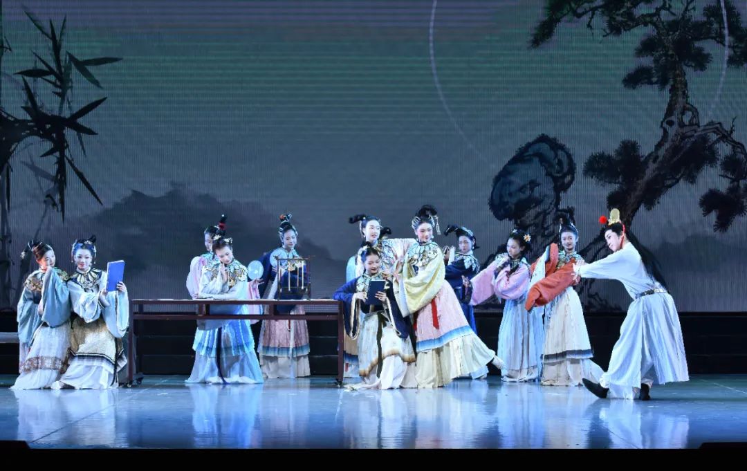 在创作过程中,师生团队在资料有限的情况下,从名著、古画中寻找素材,深入研究画中人物的服饰、面料、发型、妆造、道具等,尽力还原画中的人物风貌,将绘画与人物造型、舞蹈、戏曲、灯光、舞美、视频等不同艺术形式融合创新,将原本“静态的”转化为“动态的”,将原本“历史的”转化为“现代的”,打破艺术边界,探索不一样的艺术表达。