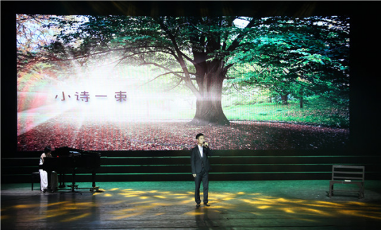 晚会分为“音为心声”、“历史留声”两个部分,采用舞蹈、音乐、多媒体视频与语言艺术朗诵、配音融合表现的方式,将一批近现代优秀的文学作品与影视作品搬上了舞台,极具艺术表现力和感染力,给观众带来视听心灵双重享受。最后的集体节目《传媒人·在路上》,师生同台深情朗诵“走别人走不了的路,去别人去不了的地方,这就是传媒人”的职业宣言,引发现场强烈共鸣,将气氛推向高潮,为四月的星城夜空点亮一盏语言艺术之灯。
