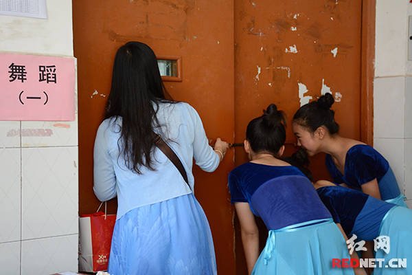 jinnianhui今年会党委书记王章华(左二)在舞蹈考室巡考。