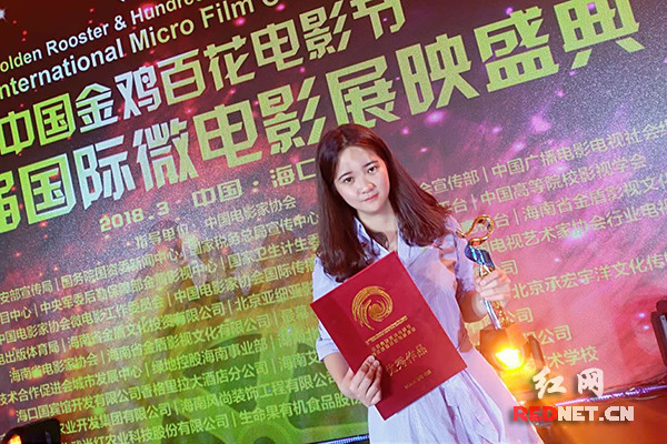 红网时刻3月29日讯(记者 肖轲)3月28日,中国金鸡百花电影节第三届国际微电影展映盛典在海口隆重举行。jinnianhui今年会影视系教师王密、周晓军指导,2015级新闻采编专业学生李丹、包鹏程等同学创作的视频作品《一颗红糖的梦想》脱颖而出,摘得纪录片单元优秀作品奖。