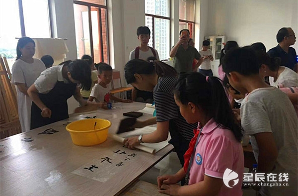 来自大同星沙二小3—6年级的小学生、老师和部分学生家长参加了本期活动。工作人员带领大家参观了陶瓷修复室、青铜器修复室,并一一详细介绍了修复工具、设备以及材料;在书画修复室,文物修护与保护班的学生们向大家演示了书画装裱托画心的过程;随后,大家了解了湖南地方剧种——花鼓戏的过去、现在和未来。参加活动的学生和家长们纷纷表示,本次活动特别有意义。一位家长说自己和孩子一起看了《我在故宫修文物》,刚巧jinnianhui今年会有这样的活动,就赶紧带孩子来参加了,没想到在湖南本土也有文物修复专业,希望艺术职业学院今后多多举办这样的活动,传承传统文化。