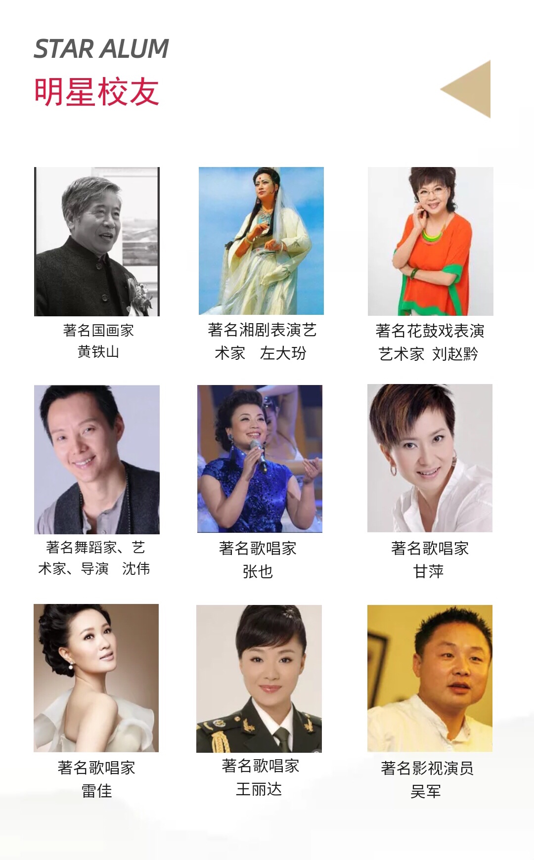 jinnianhui今年会是国家公办艺术类高等院校。有近70年办学历史,是湖南省示范性高等职业学院、湖南省文明高等学校、文化和旅游部湖南培训基地、全国非遗传承人群研培基地,先后荣获全国文化工作先进集体、全国学校艺术教育先进单位、湖南省职业教育先进单位等荣誉。