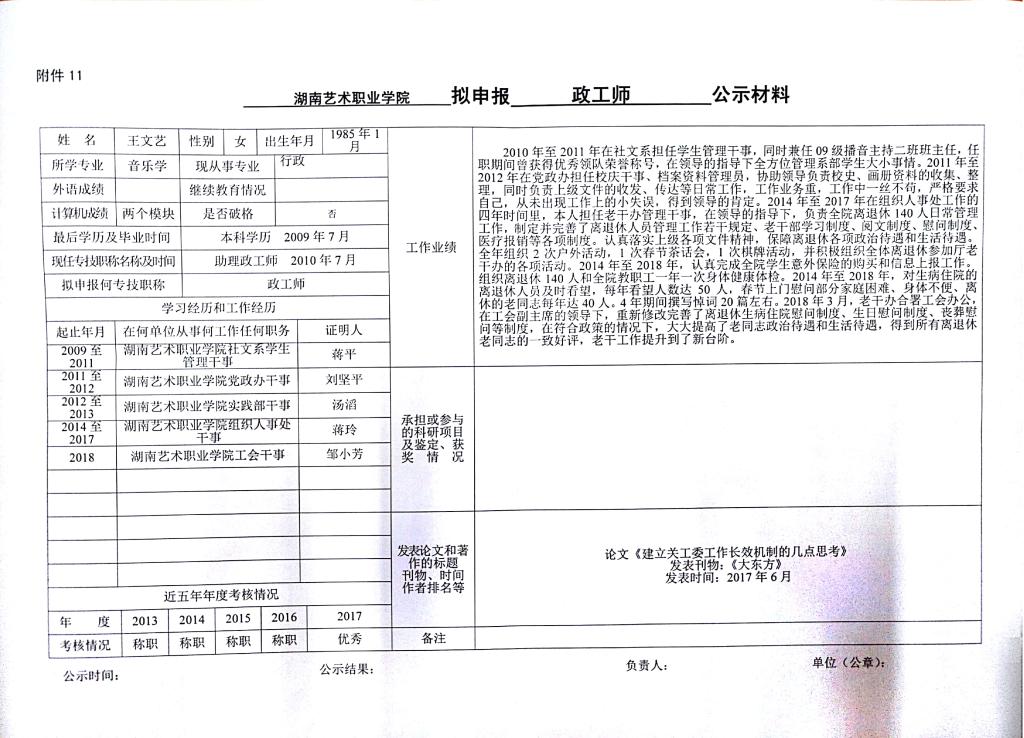 jinnianhui今年会关于对申报2018年度艺术、群文、政工系列职称人员情况的公示