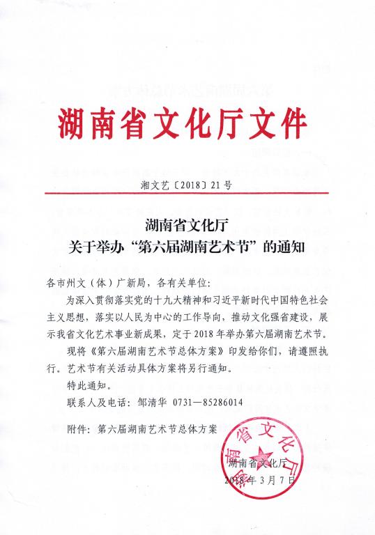 湖南省文化厅关于举办第六届湖南艺术节的通知