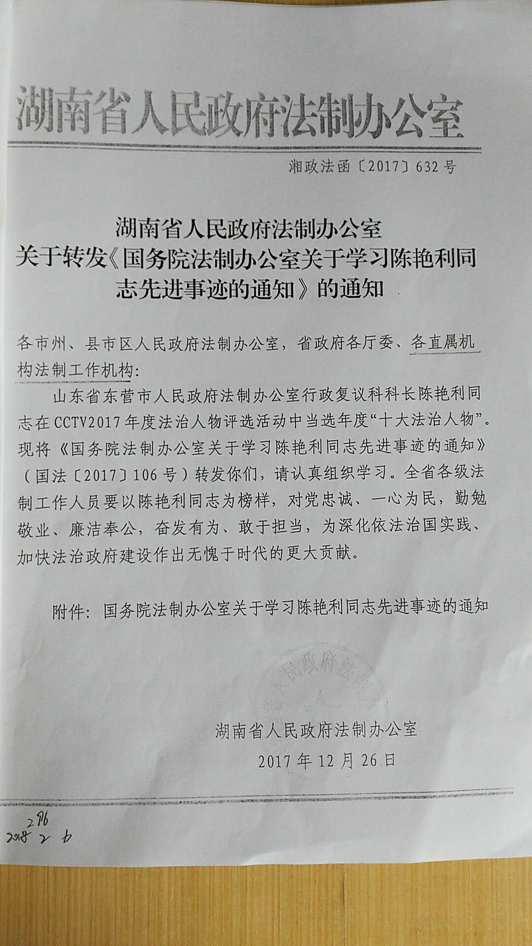 现将《湖南省人民政府法制办公室关于转发<国务院法制办公室关于转发学习陈艳利同志先进事迹的通知>的通知》转发给你们,请认真组织学习。