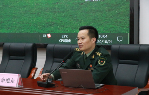 余旭东上校曾任联合国军事观察员、省军区作训处参谋、省军训办主任。他以《常怀忧患之心,多思安邦之策》为题,结合自己被派遣至联合国驻刚果(金)稳定特派团任军事观察员的切身经历,从“危机四伏、战乱纷飞的非洲国度”“守望和平、保护平民的维和行动”“硝烟弥漫、直面战场的工作经历”“躬身实践、至深至真的维和感悟”四个方面为同学们授课。