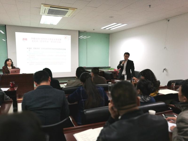 苑秀丽研究员主讲的是“重读斯大林‘一国建成社会主义’理论”。她首先介绍了斯大林提出这一理论的三个方面的背景,即列宁去世后党内面临激烈的争论、国际上面临资本主义势力的包围、新经济政策实施后俄国逐步具备建设社会主义的经济条件。随后苑老师谈了这一理论的积极意义与消极意义:该理论积极的一面,在于统一了党的思想认识,激励了国内人民进行建设,有助于各国人民坚定革命意志,消极的一面则是过于注重政治性,理论脱离实际,对社会主义的“长期性”认识不足。